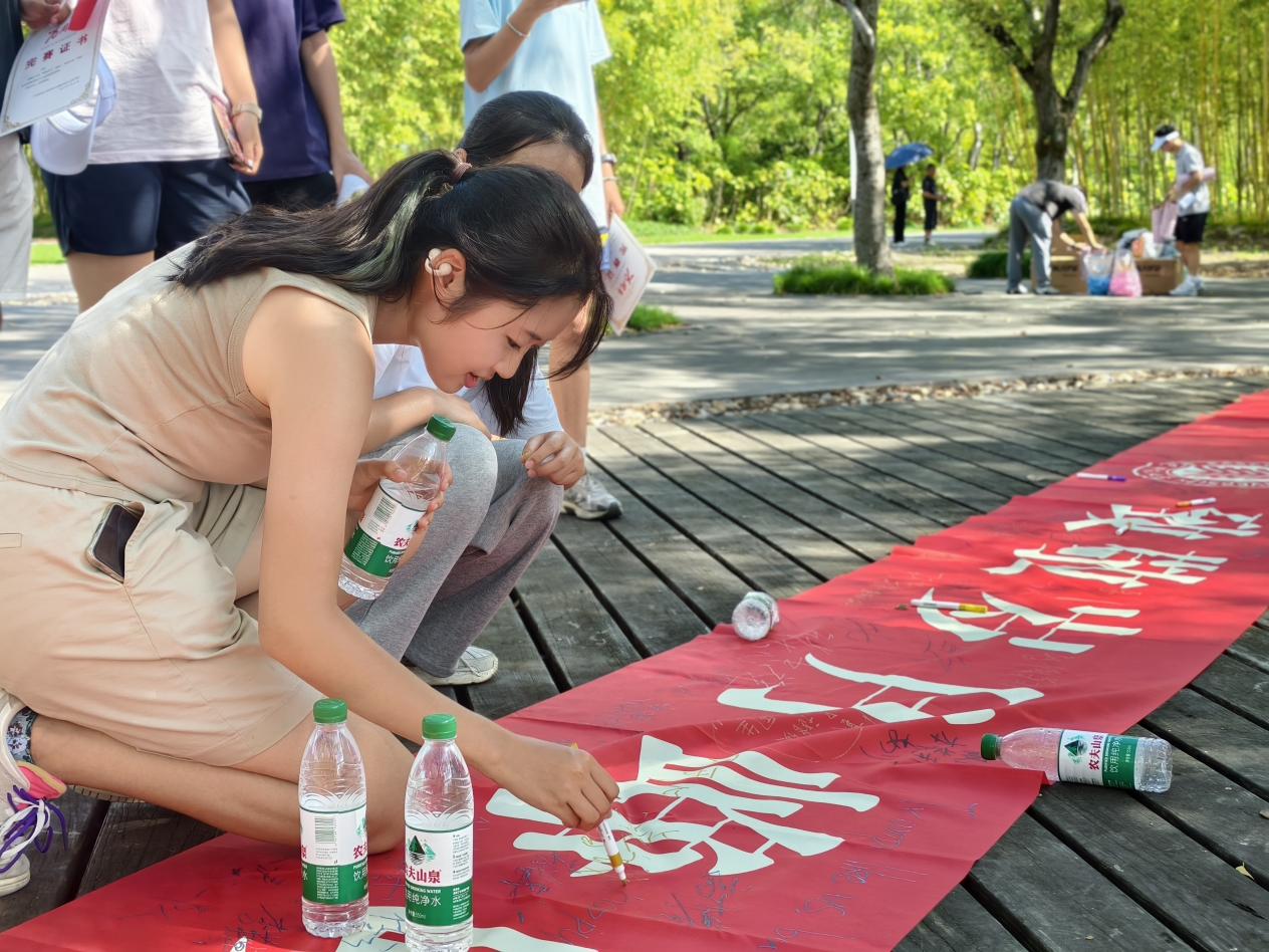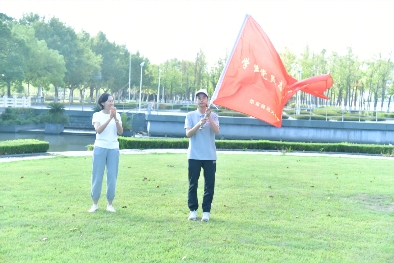 活动终点设在浦江第一湾公园。完成全程的参跑者在主题横幅上写下对祖国的祝福与个人的奋斗誓言。活动尾声,一场精心策划的“快闪”合唱《我和我的祖国》将现场气氛推向高潮。领唱同学从人群中缓缓走出,深情开嗓。不经意间,熟悉的旋律从天桥、从广场、从绿荫处悠然响起,最终汇聚成全场激昂的大合唱。这意外的惊喜让所有人心潮澎湃,挥舞的国旗与动人的旋律交织,既是深情的礼赞,也是奋进的誓言,更是华东师大人对祖国母亲的深情告白。
