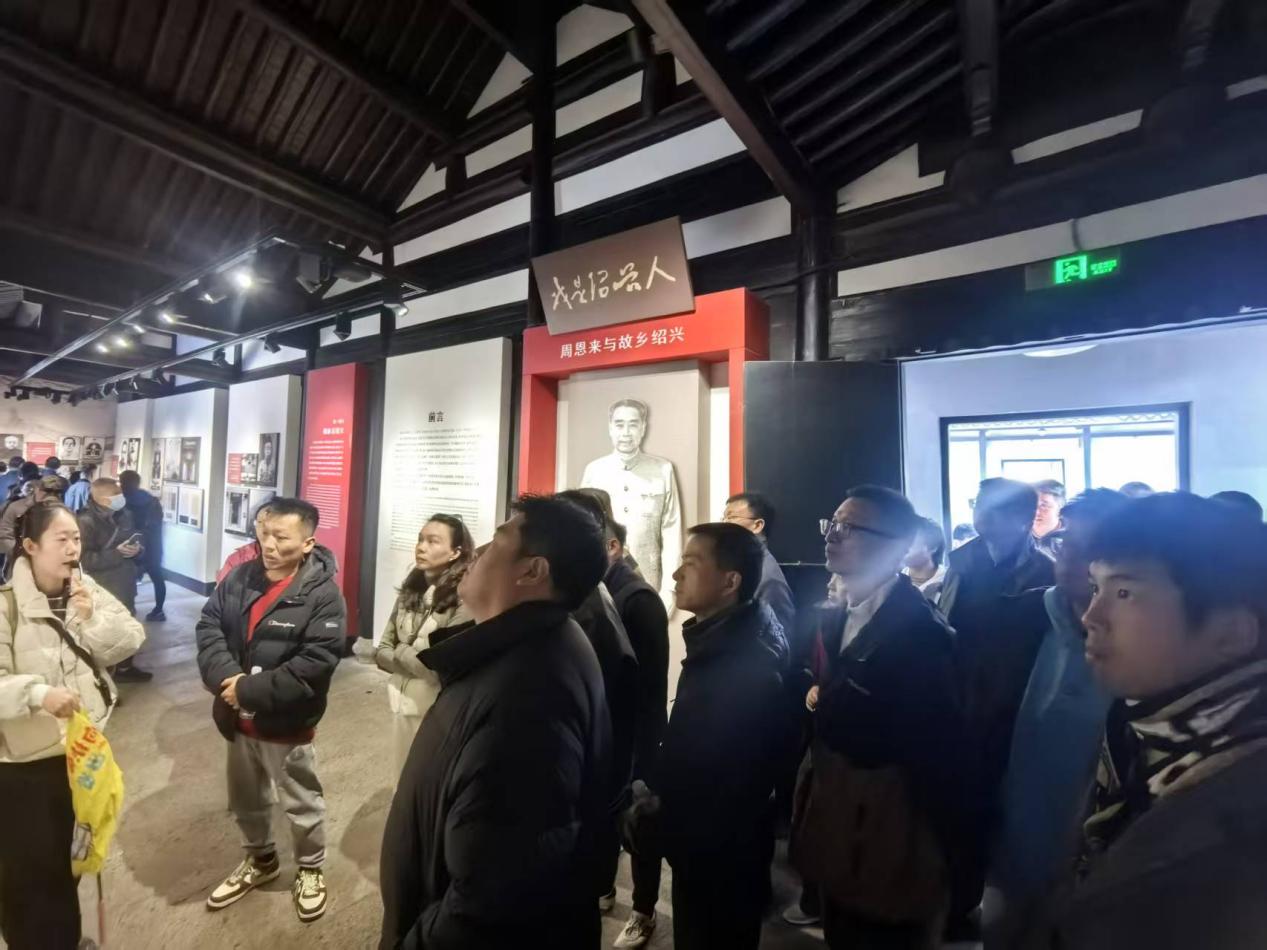 在周恩来祖居,党员同志们在讲解员的带领下,依次参观了“根脉系绍兴”“烽火千里行”“悠悠故乡情”等主题展区,认真聆听周恩来总理从热血青年到国家领导人的成长历程。当听到总理少年时期立下“为中华之崛起而读书”的壮志豪言,以及晚年带病工作、平均每40天接受一次手术仍坚持处理国家事务的感人事迹时,现场党员无不为周总理一生严于律己的崇高风范和勤政为民的深厚情怀深深感动。走出周恩来祖居,党员同志自觉驻足周恩来总理的雕像前,庄重地重温入党誓词,并纷纷表示要学习周总理严以修身、俭以养德的作风,将其融入师德修养与日常言行,夯实立德树人的思想根基。