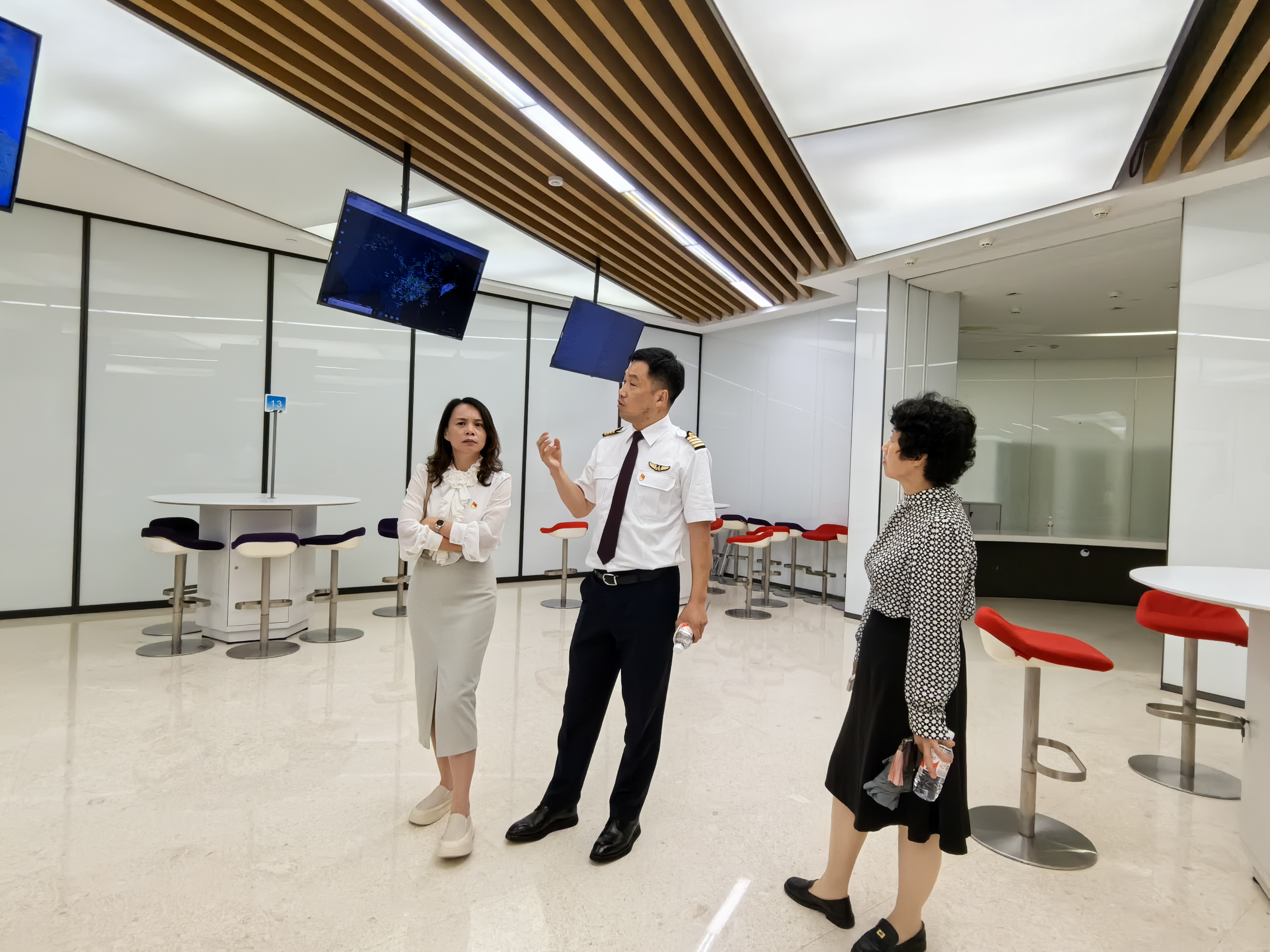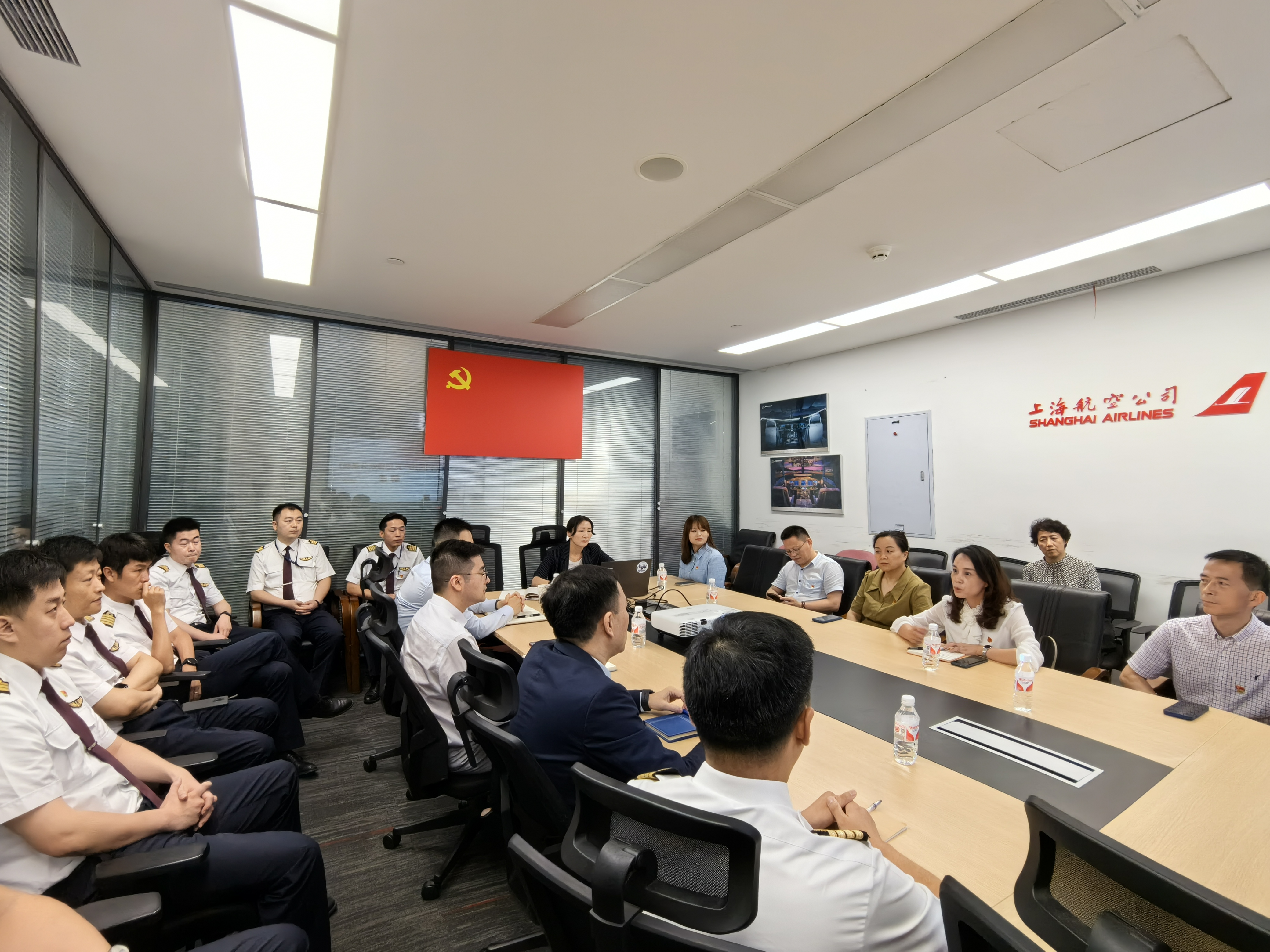 会后,双方党员共同走进东航城航班准备厅,参观上海航空公司的安全教育特色做法和服务保障体系。