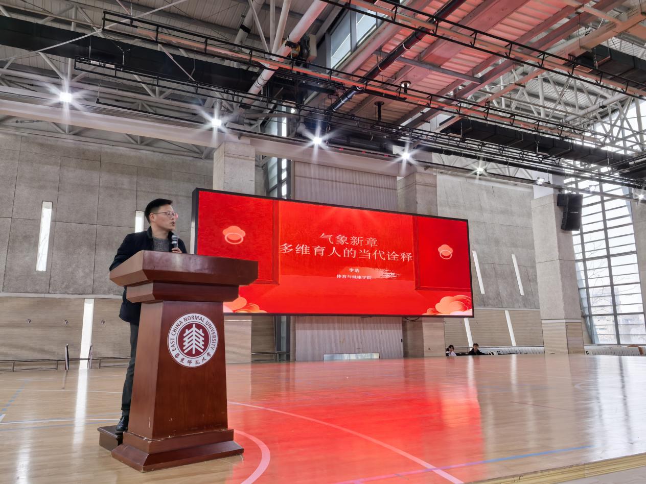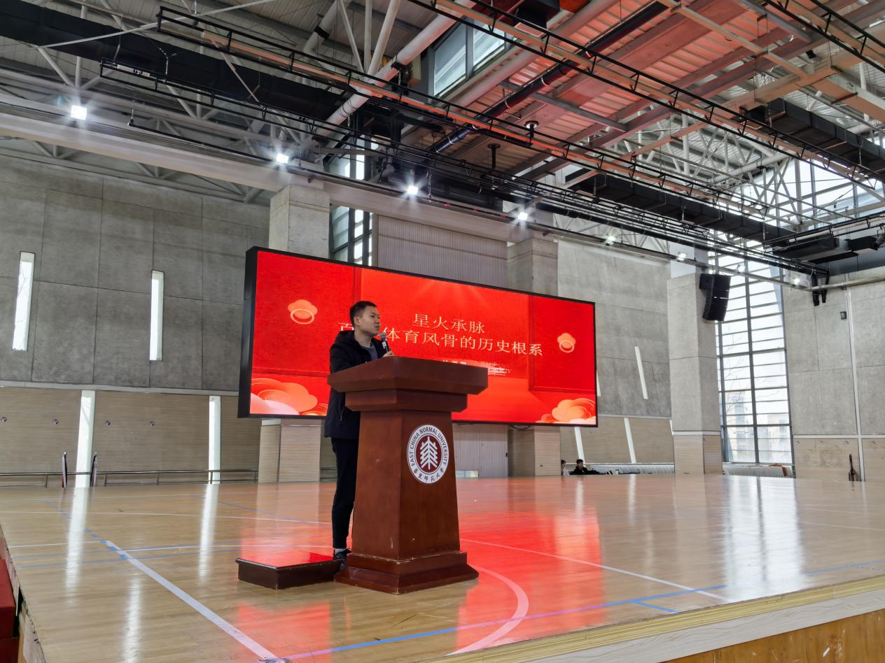 百年光华,精神如炬。光华体育精神历经岁月沉淀,早已成为一代代华东师大人拼搏奋进的精神象征。杜源恺生动解读了光华大学校名“光我中华”的内涵,象征着复兴中华,反帝国主义割宰和奴役的革命精神,带领大家深入回顾了华东师大体育精神的百年发展历程,一同感受师生体育救国的炽热精神。杜源恺满怀激情地说:“当年,几名光华大学师生怀着满腔热血,毅然成立江南大学体育协会(简称“江大体协”),以体报国,形成以爱国师生为主的“江大体协”与外籍人控制的“华大体联”相抗衡的局面。作为反帝斗争的产物,“江大体协”日益巩固和壮大,成为上海地区及周围城市大学校际体育活动的组织者,为推动我国体育事业的发展贡献了重要力量。”