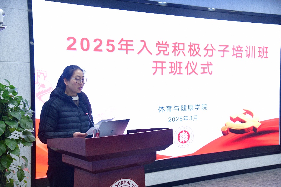 为深刻领会习近平新时代中国特色社会主义思想,进一步加强入党积极分子系统性理论学习与实践锤炼,2025年3月5日下午,在色情小说 党委指导下,2025年学院入党积极分子培训班开班仪式暨第一次集中培训,在二楼报告厅顺利举行。出席开班仪式的有学院党委副书记兼副院长李浩、体育教育教工党支部书记杜舒书、专职组织员袁春、本科生党支部书记宋戈、部分学生党支部书记代表及经过严格遴选的68名入党积极分子。会议由学员代表谭钧译主持。
