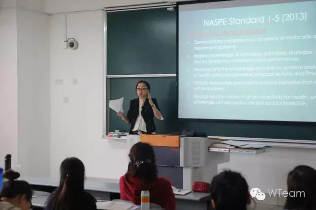 在报告中,顾湘丽博士首先对美国体育课程标准(National Standards for K-12 Physical Education)给予了解读,她通过鲜活的案例来说明了儿童青少年在成长的环境中,可能受到教师或家长在体育运动方面的误导,导致其对“体育”产生固有的偏见,从而影响孩子未来体育运动兴趣的养成。此外,她也帮助同学们进一步厘清了“体育”的整体意义,即“体育”不仅限于体育课堂教学,而是在生活中无处不在,而体育的育人功能应该始终体现在广义的体育教育之中。随后,她介绍了美国的一种运动技能测量评价工具“PE Metrics”,并以小学篮球和足球为例,详细了讲解了美国中小学体育教师以及研究者如何运用该工具进行学生的运动技能评价,并与大家分享了她的研究观点和研究成果:运动技能、身体活动水平和体能水平都是影响儿童肥胖的重要因素,尤其是在儿童早期阶段运动技能的有效掌握,对于预防儿童肥胖可能有更重要的指导意义。该报告引起了老师和同学们的极大兴趣,并就相关问题与顾湘丽教授进行了深入交流。