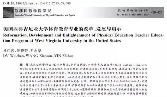 《美国西弗吉尼亚大学体育教育专业的改革、发展与启示》