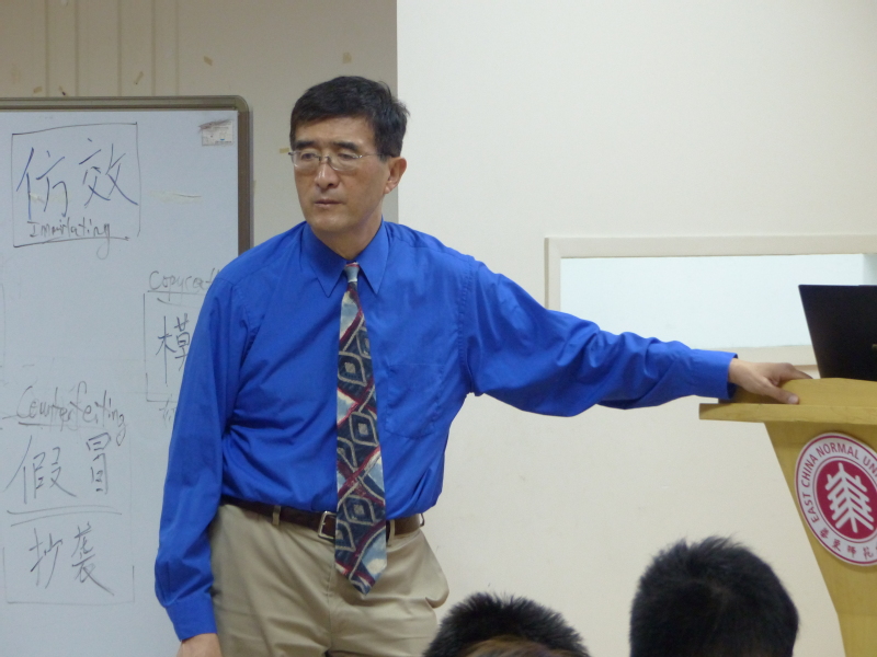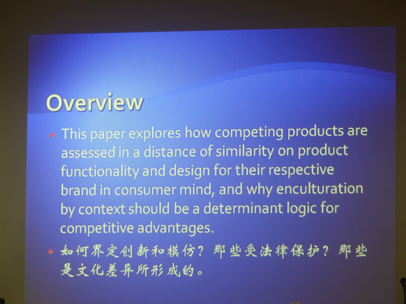 讲座在潘教授幽默诙谐的言语中拉开序幕。首先,潘巍教授针对如何界定创新和模仿的问题与大家讨论品牌的形成过程和价值意义。潘教授以自己的经历为例,讲述了不同国家的文化差异情况,从而说明文化差异对于不同国家的创新发展有着深刻影响。潘教授强调,厂家之间竞争产品,消费者形成和确定品牌,“对于厂家的品牌来说,只有融入和适应当地的文化才能有利于产业的发展。”讲座过程中,潘教授结合不同的产品案例进行讲解,说明了模仿产品出现的原因,并引导学生进行思考:到底什么样的模仿和创新是受法律保护的?之后,他从产品命名的原则、仿效的概念等角度一一作出了解释。