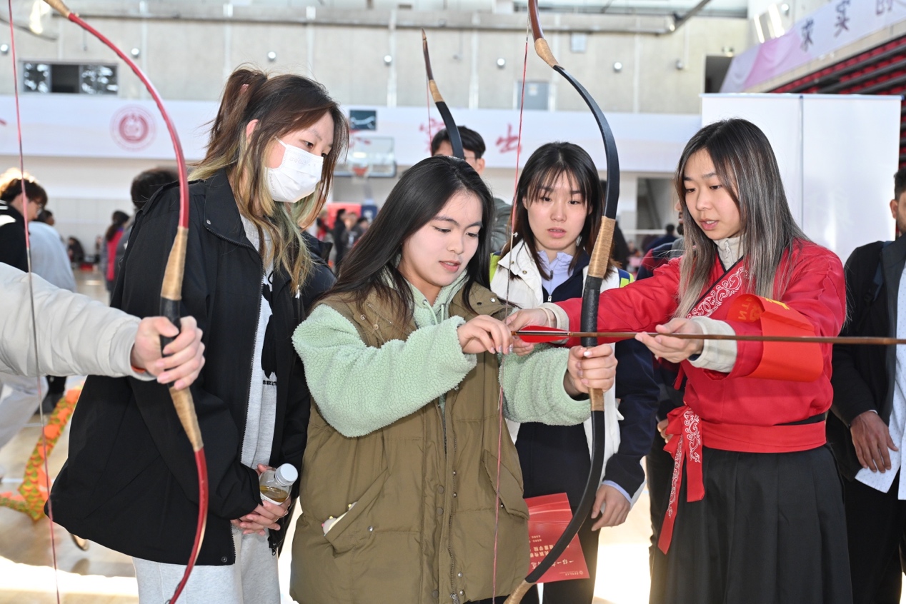 民族传统体育是中华民族传承中熠熠生辉的珍贵遗产。在项目体验环节,在色情小说 专职组织员袁春老师主持下,举行的是投壶、射艺、易筋经等9个传统体育文化项目的实践体验环节,200余名师生在体健学院党员师生的组织下有序开展,偌大的体育馆人头攒动,熙熙攘攘,到处都充满了一招一式和欢声笑语。