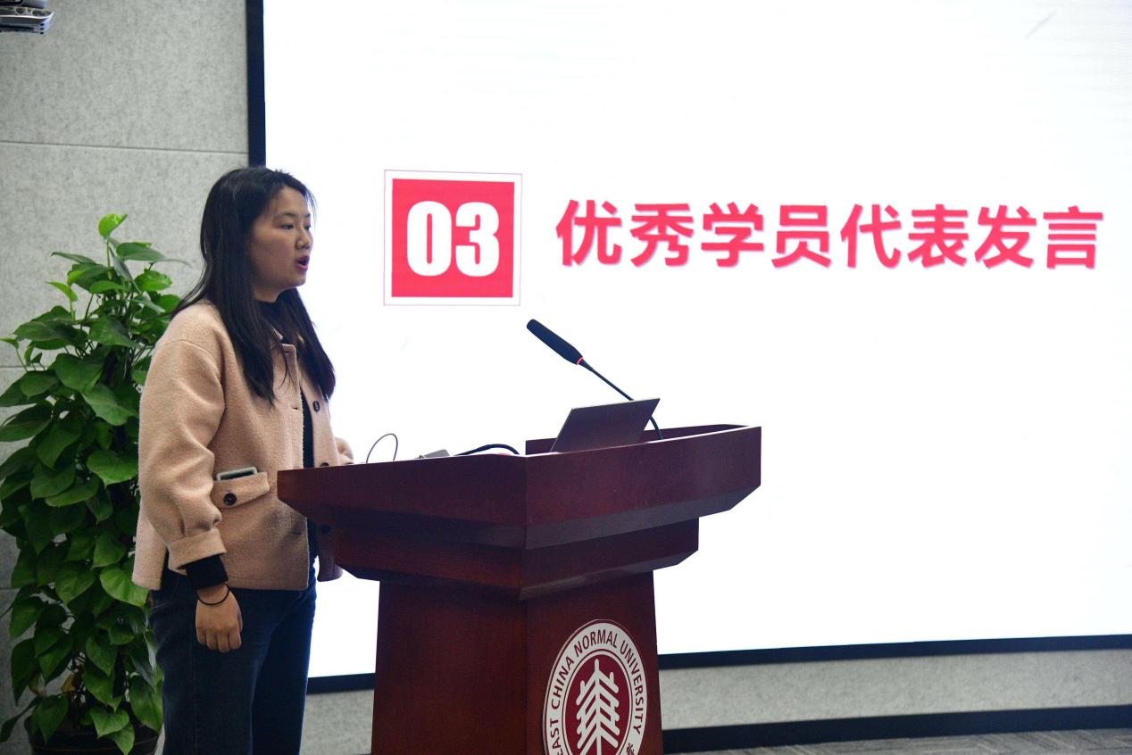“结业典礼既是终点,也是新的起点”,优秀学员代表李璐瑶说,她深情地汇报了自己在党课党章学习中的心得体会,呼吁大家在今后的生活中要更加努力地学习党的知识,以更高的标准要求自己,向党组织靠拢。