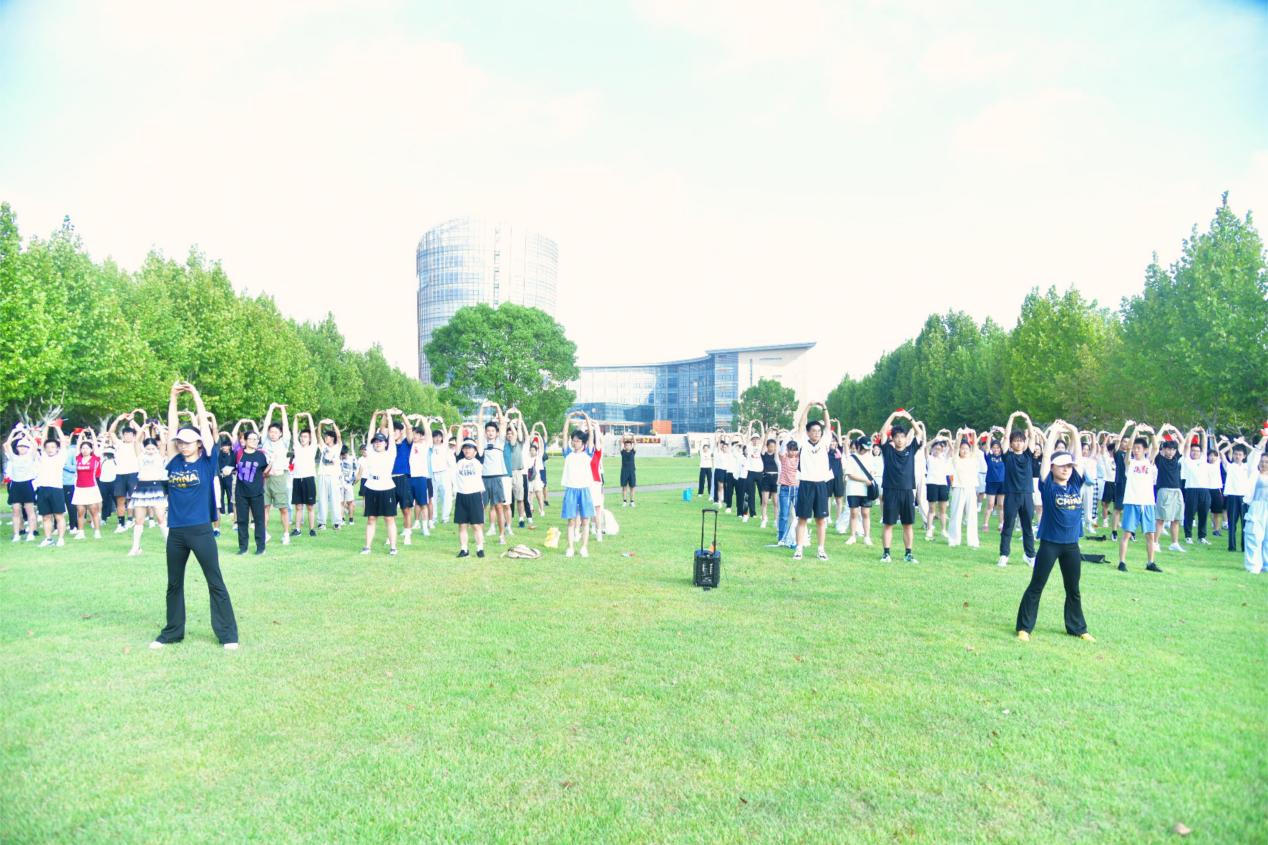 活动终点设在浦江第一湾公园。完成全程的参跑者在主题横幅上写下对祖国的祝福与个人的奋斗誓言。活动尾声,一场精心策划的“快闪”合唱《我和我的祖国》将现场气氛推向高潮。领唱同学从人群中缓缓走出,深情开嗓。不经意间,熟悉的旋律从天桥、从广场、从绿荫处悠然响起,最终汇聚成全场激昂的大合唱。这意外的惊喜让所有人心潮澎湃,挥舞的国旗与动人的旋律交织,既是深情的礼赞,也是奋进的誓言,更是华东师大人对祖国母亲的深情告白。