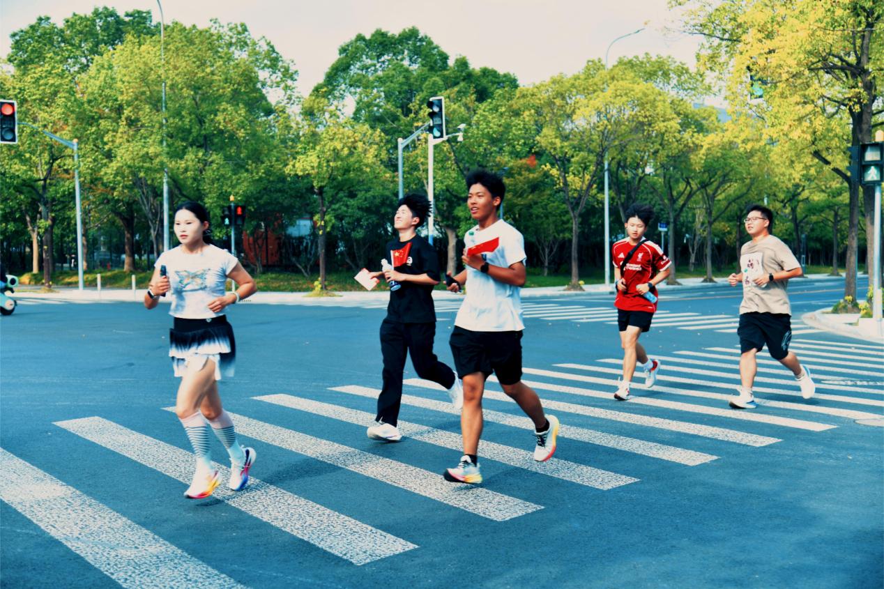 随着紫竹街区党支部书记乔蕾的发令枪响,健身跑活动正式开始!参赛队员沿着“初心传承线”与“奋进启航线”两条路线出发,沿途串联河口海岸科学家精神陈列室、冯契学术成就陈列室、紫竹高新产业园区、组织工程国家工程研究中心、浦江第一湾公园初心驿等场馆资源,引导广大学生在奔跑中打卡党史知识、科学家精神、教育强国梦等新中国发展历程的相关知识,体悟国家发展征途,筑牢理想信念,实现“学思用贯通、知信行统一”,展现青春向党的活力风采。