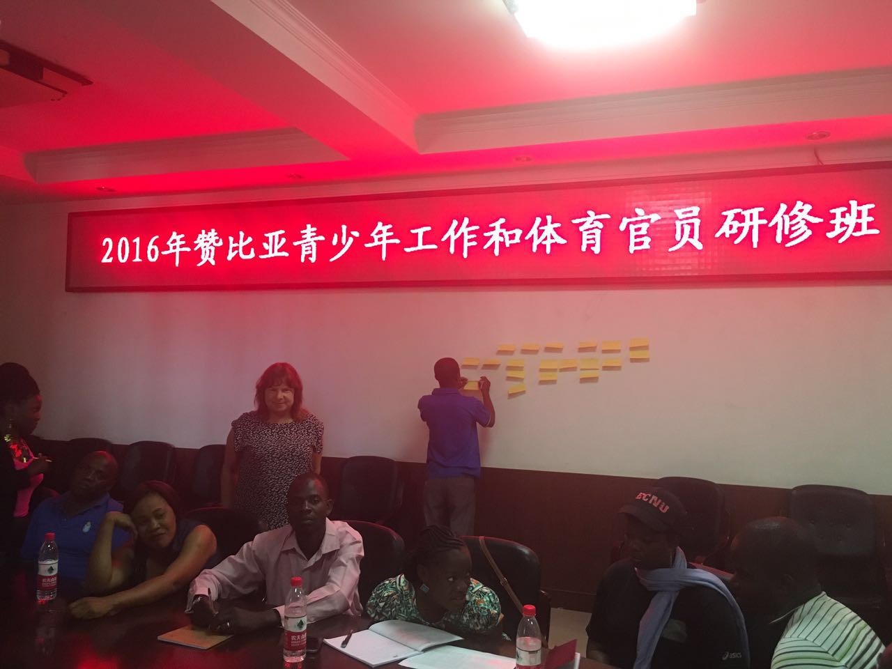 在本土学术讲座与实践考察的基础上,为了进一步拓宽学员的国际视野,主办方还安排了大量的国际交流活动。研修期间,学员们先后聆听了加拿大英属哥伦比亚大学的Jeanne Kentel教授、美国密歇根大学Weiyun Chen教授、美国坎纳绍州立大学Jin Wang教授、特拉华州立大学Li Chen教授、意大利拉斐尔大学Alberto Cei教授等国际著名青少年体育与体育教育专家的多场高水平讲座,与专家进行了充分交流,了解了世界各个地区的教育发展趋势和青少年体育发展经验。尤其是Jeanne Kentel和Weiyun Chen两位教授有关青少年体质健康发展和学校体育教学问题的讲座与交流,让全体学员耳目一新,受益匪浅。此外,主办方还在最后一天为学员们精心准备了充满中国风味的送别会,让他们更深地体会到了中国传统文化的热情与好客。这些国际交流活动,为他们今后开展国际合作创造了很好的平台,为赞比亚与其它国家的体育工作交流奠定了良好的基础。
